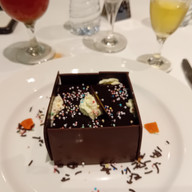 Nothing directly in the journal, but the next day’s note reported I’d attended the lecture, again on tape, devoted to a discussion on “Historic Highlights” which focused on rum and the history of cruising. My pictures show I had an omelet at breakfast, fried chicken on a waffle for lunch with chocolate sorbet as dessert – quite spectacular! I was seated at a table of 8 for tea (picture shows a mini-roll with chicken salad, and a serving of tiramisu.) Dinner pictures start with a mystery – pineapple? Followed by a cold fruit soup and cioppino.