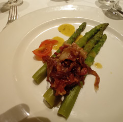 Back to my cabin, I backed up the pictures, grabbed my phones and reader, and headed to Crooners. I enjoyed several virgin bloody Marys before Eddie showed up. As he was leaving for his pre-6pm dinner, Sheila arrived and I got her a Bushmills. We discussed the merits and challenges of round-the-world cruises. I have no idea what I had for dinner, as the two pictures are out of focus.