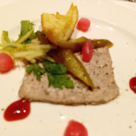 I’ve got pictures of dinner on both days: Beef Wellington and a coated chocolate treat for Friday; a garbanzo bean salad, surf and turf for the main, and birthday cake for dessert. For Saturday, the solos (Sheila, Marie, James) ushered me to Concerto for an early dinner.