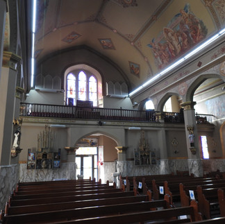 Set up a slight hill and a block off the downtown waterfront, Saints Peter and Paul Cathedral is a light orange-yellow hue with white trim and deep green doors, and sits right against the sidewalk, rising 7-feet over the street. In fact, the porch deck entering into the building sits over where the sidewalk would be, forcing any pedestrian into the street if not entering the church.