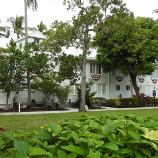 Leaving the fort, I walked around outside, along the mangroves that border the moat. Leaving by a different path, I passed locals’ cars as family went to the beach and surfers peeled off wetsuits. My next objective was the Hemingway House. Google Maps took me on a zigzag stepping route, past numerous B&Bs and inns. Christmas decorations adorned several, with a few going over the top.