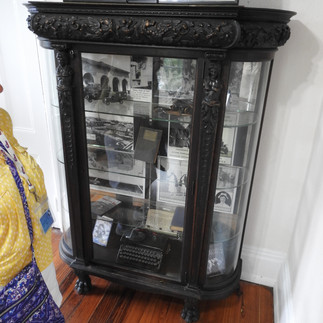 Once I paid my admission fee, I learned I had about 15 minutes before the next guided tour. Wandering the property, I sought out any of the 50-odd cats on the grounds, particularly those with 6-toes. As I wandered the outside of the two-story house, I passed the cat cemetery, the pool, the bookstore below the writing studio. Inside I spotted the portraits of Hemingway, the model of his fishing boat, the upstairs bedrooms, the view of the lighthouse from the outside walkway off the bedrooms. After the tour ended at the bookstore, I climbed the outside staircase to see where the master wrote.
