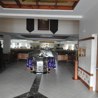 St Francis Xavier Cathedral is an octagonal building, coral in color, oriented with the altar at the northwest end. This part of the building is above a parking area, as the entrance is on the higher portion of a hill. Unfortunately, the building was locked, the custodian cleaning the altar unaware of my attempts to try every door. I was able to get a few shots of the interior through windows in the doors, but I was frustrated that there weren’t options to enter. As I walked the perimeter, I got shots, avoiding water spots on the camera lens.