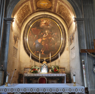 Another small, simple church, again the single center aisle separated wooden pews which might hold 4. Peaked vault, with the dark wood timbers exposed. In the niche holding the high altar, an oval painting depicted the martyrdom of St Aurea. Towards the entrance, shrines to the Virgin Mary were fronted by lit electric candles. Heraldic shields honored past clergy in this episcopal seat which dated back to the third century. Google states it is a basilica, while Gcatholic does not, and there was no sign of an ombrellino (red and yellow silk tight umbrella) or a tintinnabulum (bell on pole).