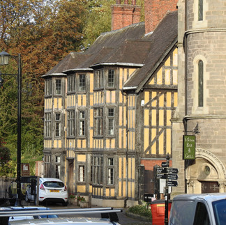 After alighting from the airport-bound train from York at Manchester Piccadilly, I eventually continued to the station in Shrewsbury in County Shropshire. (The connecting train I’d planned was cancelled, delaying arrival.) I’d been in touch with the Tourist Office and scheduled a walking tour, but I would miss it. While at the connecting station I struck up a chat with a couple from Wales – they would be changing at Shrewsbury as the border was 7 miles to the west. When the TFW train arrived it was 2 cars, and was packed. Shrewsbury is known for its Tudor-faced houses and historic center. Situated on the hill in an oxbow on the River Severn, it would have been highly defensible. In addition to the RC cathedral I wanted to photograph, I was also looking forward to visiting its two other landmark churches.